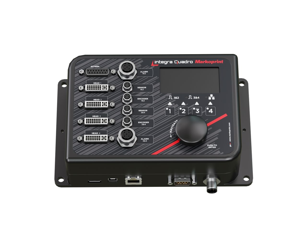 Der Markoprint integra Quadro ist ein leistungsstarker Inkjet-Controller zur gleichzeitigen Steuerung mehrerer Druckköpfe in industriellen Kennzeichnungsanwendungen. Das System wurde für Produktionsumgebungen entwickelt, in denen mehrere Druckpositionen oder parallele Kennzeichnungsaufgaben realisiert werden müssen.